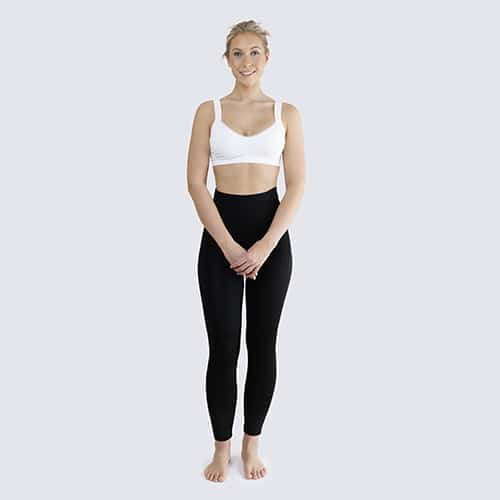 Hellang kompresjonsbukse i strikket sømløst materiale. Anbefales etter inngrep på ben. Hekte- og krok-knepping på begge sider for enkel på- og avkledning/justering av passform. Åpning i skrittet gjør det mulig å gå på toalettet uten å måtte ta av plagget.